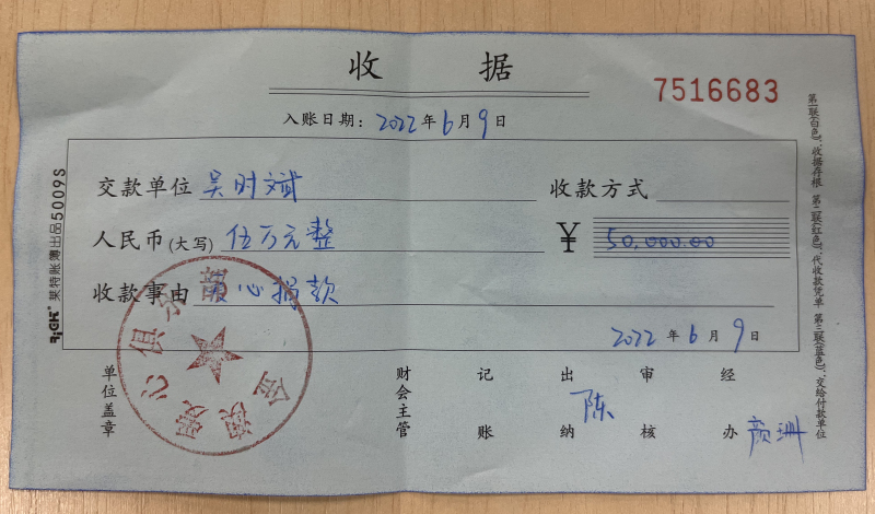 6月9日,2022年度“感动金澳人物”、金澳科技副总裁吴时斌将5万元奖金全额捐赠予金澳爱心俱乐部,又一笔充满温情的捐款,让“金澳大家庭”更有温度。
