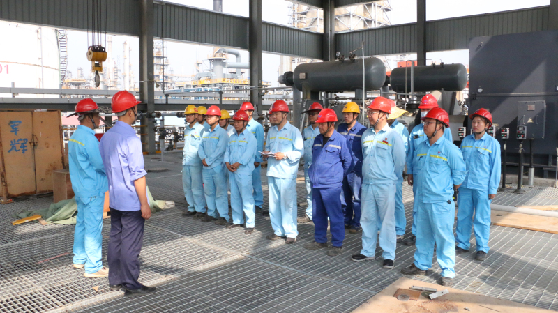 金澳科技党委书记、轮值总裁肖生强,党委委员、总裁助理刘应龙,动力党支部书记、总经理王淼等领导深入现场,就相关开工调试准备工作进行现场指导和安排。