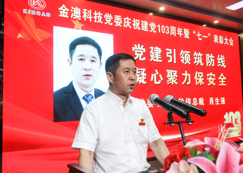 金澳科技党委书记、轮值总裁肖生强以《党建引领筑防线 凝心聚力保安全》为主题,为大家上了一堂实用性强的党课。他从全体党员干部“持续筑牢思想根基”“时刻注重自身安全责任落实”“着力提升自身党性素养”三个方面作了交流分享,结合公司实际阐述了保障安全生产的重要性与必要性,让大家深受教育和启发。
