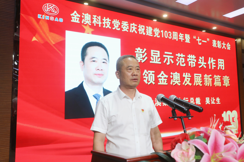 6月28日晚,金澳集团在多功能厅隆重召开庆祝中国共产党成立103周年暨“七一”表彰大会。金澳集团执行总裁吴让生,金澳科技党委书记、轮值总裁肖生强,党委副书记、副总裁王自力等在家高管、各党支部党员、入党积极分子,部分副科级及以上管理干部参加。