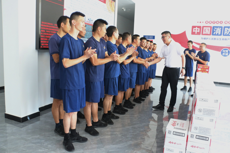 【概要描述】7月25日,在“八一”建军节即将到来之际,金澳科技副总裁吴时斌、杨巍一行带着满载着关心的防暑饮料,来到潜江市消防救援大队,向消防官兵们致以崇高的敬意和诚挚的慰问。