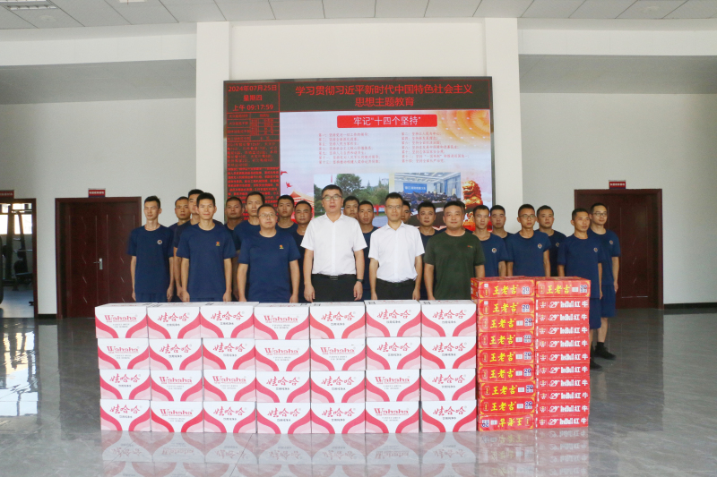在“八一”建军节即将到来之际,金澳科技副总裁吴时斌、杨巍一行带着满载着关心的防暑饮料,来到潜江市消防救援大队,向消防官兵们致以崇高的敬意和诚挚的慰问。