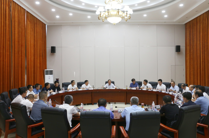 潜江市委书记盛文军带队到金澳科技召开现场办公会,市委副书记、市长杨勇,市委常委、市委秘书长陈庆忠,市政府党组成员、副市长孙刚、王冰、赵曜,市政府党组成员、办公室主任陈华,金澳集团执行总裁吴让生,金澳科技党委书记、轮值总裁肖生强参加会议。
